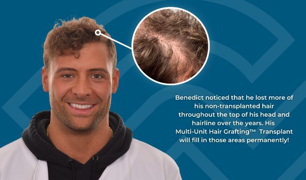 Benedict wanted to add more density throughout the top of his head and hairline. His 12 month results are going to look incredible!